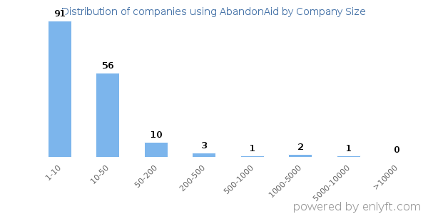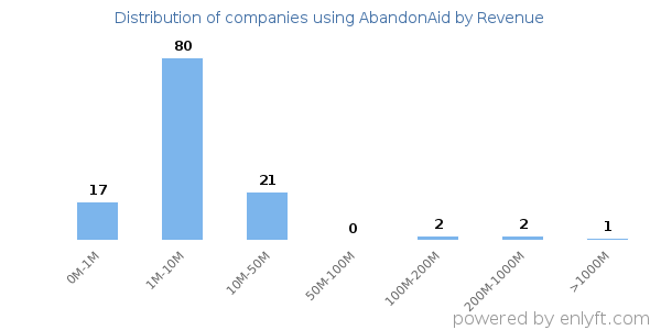 Of all the customers that are using AbandonAid, a majority (75%) are small (<$50M), 14% are large (>$1000M) and 7% are medium-sized.