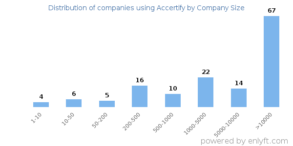 Of all the customers that are using Accertify, a majority (70%) are large (>1000 employees), 6% are small (<50 employees) and 20% are medium-sized.