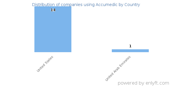We have data on 15 companies that use Accumedic. The companies using Accumedic are most often found in United States and in the Hospital & Health Care industry. Accumedic is most often used by companies with 200-500 employees and 1M-10M dollars in revenue. Our data for Accumedic usage goes back as far as 9 years and 3 months.