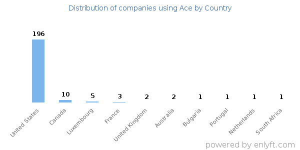 We have data on 251 companies that use Ace. The companies using Ace are most often found in United States and in the Retail industry. Ace is most often used by companies with 1-10 employees and 1M-10M dollars in revenue. Our data for Ace usage goes back as far as 4 years.