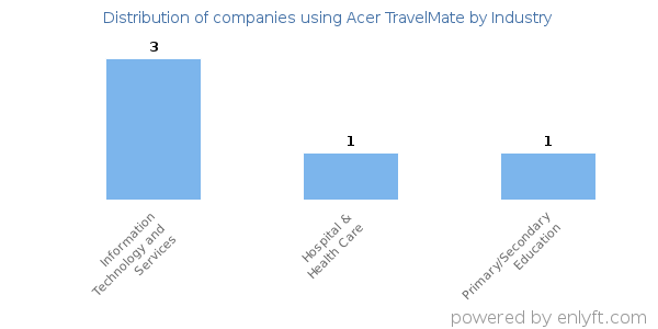We have data on 5 companies that use Acer TravelMate. Acer TravelMate is most often used by companies with 50-200 employees and 10M-50M dollars in revenue. Our data for Acer TravelMate usage goes back as far as 2 years and 8 months.