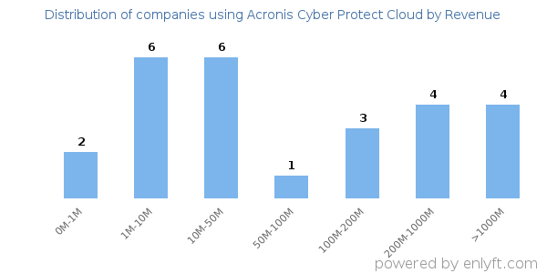 We have data on 29 companies that use Acronis Cyber Protect Cloud. The companies using Acronis Cyber Protect Cloud are most often found in United States and in the Information Technology and Services industry. Acronis Cyber Protect Cloud is most often used by companies with 10-50 employees and 10M-50M dollars in revenue. Our data for Acronis Cyber Protect Cloud usage goes back as far as 5 years.