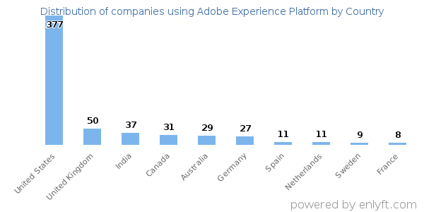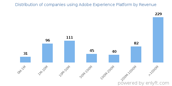 We have data on 716 companies that use Adobe Experience Platform. The companies using Adobe Experience Platform are most often found in United States and in the Information Technology and Services industry. Adobe Experience Platform is most often used by companies with >10000 employees and >1000M dollars in revenue. Our data for Adobe Experience Platform usage goes back as far as 3 years.