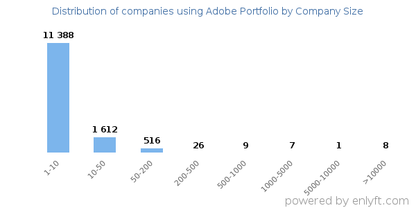 We have data on 27,003 companies that use Adobe Portfolio. The companies using Adobe Portfolio are most often found in United States and in the Design industry. Adobe Portfolio is most often used by companies with 1-10 employees and 0M-1M dollars in revenue. Our data for Adobe Portfolio usage goes back as far as 6 years and 11 months.