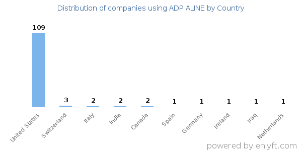 We have data on 125 companies that use ADP ALINE. The companies using ADP ALINE are most often found in United States and in the Hospital & Health Care industry. ADP ALINE is most often used by companies with 1000-5000 employees and >1000M dollars in revenue. Our data for ADP ALINE usage goes back as far as 8 years and 2 months.