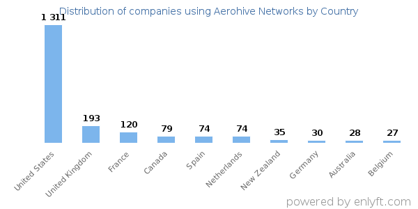We have data on 2,216 companies that use Aerohive Networks. The companies using Aerohive Networks are most often found in United States and in the Information Technology and Services industry. Aerohive Networks is most often used by companies with 50-200 employees and 10M-50M dollars in revenue. Our data for Aerohive Networks usage goes back as far as 9 years and 11 months.