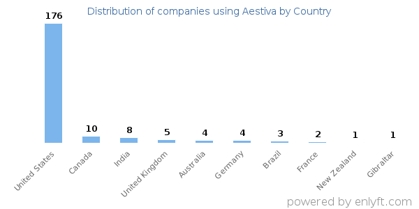 We have data on 223 companies that use Aestiva. The companies using Aestiva are most often found in United States and in the Hospital & Health Care industry. Aestiva is most often used by companies with >10000 employees and >1000M dollars in revenue. Our data for Aestiva usage goes back as far as 8 years and 8 months.