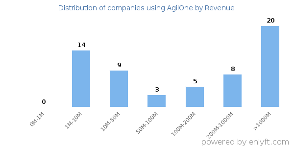 We have data on 62 companies that use AgilOne. The companies using AgilOne are most often found in United States and in the Retail industry. AgilOne is most often used by companies with >10000 employees and >1000M dollars in revenue. Our data for AgilOne usage goes back as far as 10 years and 3 months.