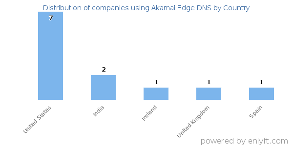 We have data on 12 companies that use Akamai Edge DNS. The companies using Akamai Edge DNS are most often found in United States and in the Information Technology and Services industry. Akamai Edge DNS is most often used by companies with >10000 employees and >1000M dollars in revenue. Our data for Akamai Edge DNS usage goes back as far as 3 years and 4 months.