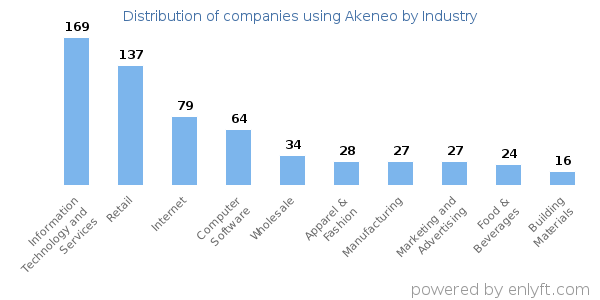 We have data on 926 companies that use Akeneo. The companies using Akeneo are most often found in United States and in the Information Technology and Services industry. Akeneo is most often used by companies with 50-200 employees and 10M-50M dollars in revenue. Our data for Akeneo usage goes back as far as 8 years and 6 months.