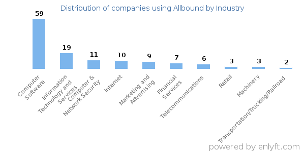 We have data on 156 companies that use Allbound. The companies using Allbound are most often found in United States and in the Computer Software industry. Allbound is most often used by companies with 50-200 employees and 10M-50M dollars in revenue. Our data for Allbound usage goes back as far as 6 years.
