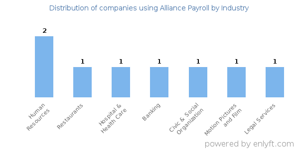 We have data on 8 companies that use Alliance Payroll. The companies using Alliance Payroll are most often found in United States and in the Human Resources industry. Alliance Payroll is most often used by companies with 50-200 employees and 1M-10M dollars in revenue. Our data for Alliance Payroll usage goes back as far as 5 years and 2 months.