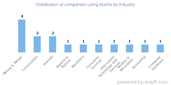 Looking at Alumio customers by industry, we find that Mining & Metals (17%), Construction (6%) and Internet (6%) are the largest segments.