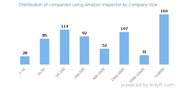 We have data on 691 companies that use Amazon Inspector. The companies using Amazon Inspector are most often found in United States and in the Information Technology and Services industry. Amazon Inspector is most often used by companies with >10000 employees and >1000M dollars in revenue. Our data for Amazon Inspector usage goes back as far as 2 years and 8 months.