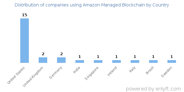 We have data on 25 companies that use Amazon Managed Blockchain. The companies using Amazon Managed Blockchain are most often found in United States and in the Information Technology and Services industry. Amazon Managed Blockchain is most often used by companies with >10000 employees and >1000M dollars in revenue. Our data for Amazon Managed Blockchain usage goes back as far as 2 years and 2 months.