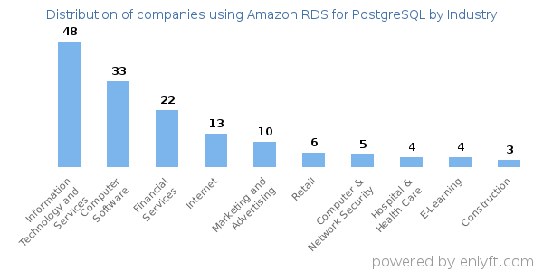 Companies using Amazon RDS for PostgreSQL - Distribution by industry