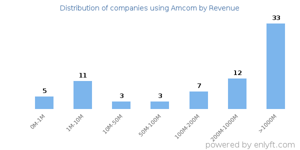 We have data on 74 companies that use Amcom. The companies using Amcom are most often found in United States and in the Hospital & Health Care industry. Amcom is most often used by companies with >10000 employees and >1000M dollars in revenue. Our data for Amcom usage goes back as far as 10 years and 1 months.