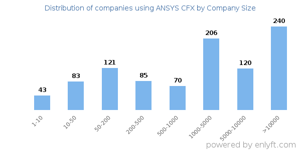 Distribution of companies that use ANSYS CFX based on company size (Employees)