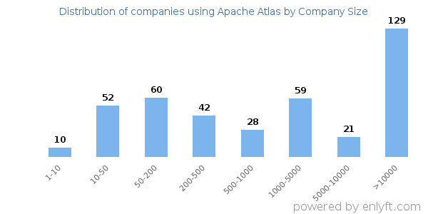 We have data on 405 companies that use Apache Atlas. The companies using Apache Atlas are most often found in United States and in the Information Technology and Services industry. Apache Atlas is most often used by companies with >10000 employees and >1000M dollars in revenue. Our data for Apache Atlas usage goes back as far as 4 years and 7 months.