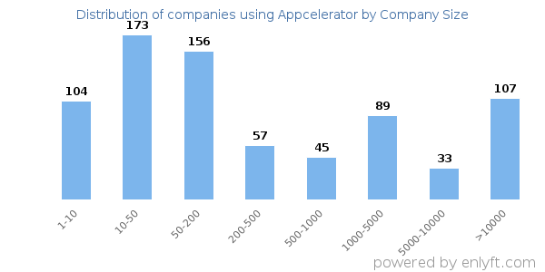 Of all the customers that are using Appcelerator, a majority (57%) are small (<$50M), 29% are large (>$1000M) and 8% are medium-sized.
