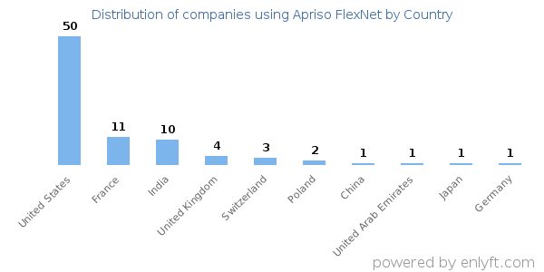 53% of Apriso FlexNet customers are in United States, 11% are in France and 10% are in India.