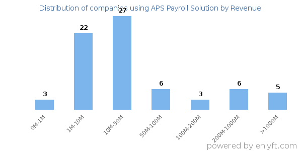 We have data on 75 companies that use APS Payroll Solution. The companies using APS Payroll Solution are most often found in United States and in the Hospital & Health Care industry. APS Payroll Solution is most often used by companies with 50-200 employees and 10M-50M dollars in revenue. Our data for APS Payroll Solution usage goes back as far as 8 years and 4 months.