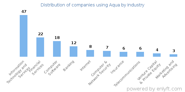 We have data on 174 companies that use Aqua. The companies using Aqua are most often found in United States and in the Information Technology and Services industry. Aqua is most often used by companies with >10000 employees and >1000M dollars in revenue. Our data for Aqua usage goes back as far as 8 years and 5 months.