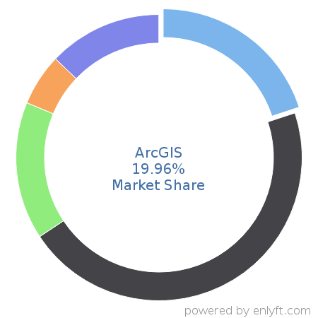 We use the best indexing techniques combined with advanced data science to monitor the market share of over 15,000 technology products, including Geographic Information System (GIS). By scanning billions of public documents, we are able to collect deep insights on every company, with over 100 data fields per company at an average. In the Geographic Information System (GIS) category, ArcGIS has a market share of about 20.0%. Other major and competing products in this category include: