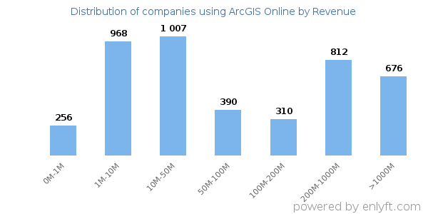 We have data on 4,674 companies that use ArcGIS Online. The companies using ArcGIS Online are most often found in United States and in the Government Administration industry. ArcGIS Online is most often used by companies with 50-200 employees and 10M-50M dollars in revenue. Our data for ArcGIS Online usage goes back as far as 3 years and 6 months.