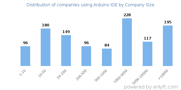 We have data on 1,162 companies that use Arduino IDE. The companies using Arduino IDE are most often found in United States and in the Higher Education industry. Arduino IDE is most often used by companies with 1000-5000 employees and 1M-10M dollars in revenue. Our data for Arduino IDE usage goes back as far as 5 years and 11 months.