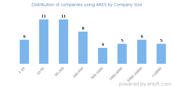 We have data on 57 companies that use ARES. The companies using ARES are most often found in United States and in the Computer Software industry. ARES is most often used by companies with 50-200 employees and 1M-10M dollars in revenue. Our data for ARES usage goes back as far as 7 years and 2 months.
