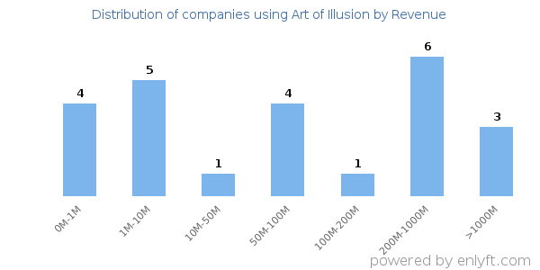 Of all the customers that are using Art of Illusion, 30% are small (<$50M), 13% are medium-sized and 30% are large (>$1000M).
