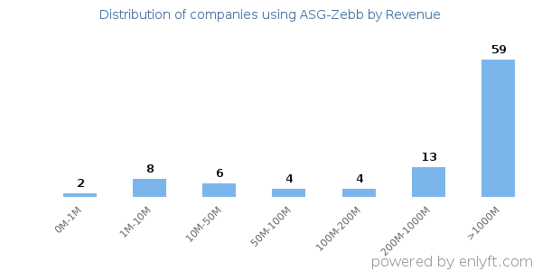 Of all the customers that are using ASG-Zebb, a majority (73%) are large (>$1000M), 12% are small (<$50M) and 0% are medium-sized.