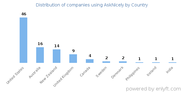 44% of AskNicely customers are in United States, 15% are in Australia, 13% are in New Zealand and 8% are in United Kingdom.