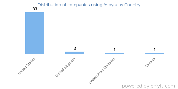 We have data on 38 companies that use Aspyra. The companies using Aspyra are most often found in United States and in the Hospital & Health Care industry. Aspyra is most often used by companies with 50-200 employees and 1M-10M dollars in revenue. Our data for Aspyra usage goes back as far as 9 years and 3 months.