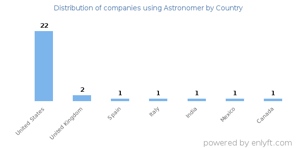 We have data on 30 companies that use Astronomer. The companies using Astronomer are most often found in United States and in the Information Technology and Services industry. Astronomer is most often used by companies with 1-10 employees and 1M-10M dollars in revenue. Our data for Astronomer usage goes back as far as 5 years and 2 months.