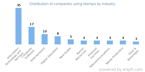 Looking at Atempo customers by industry, we find that Information Technology and Services (20%), Computer Software (10%) and Entertainment (5%) are the largest segments.