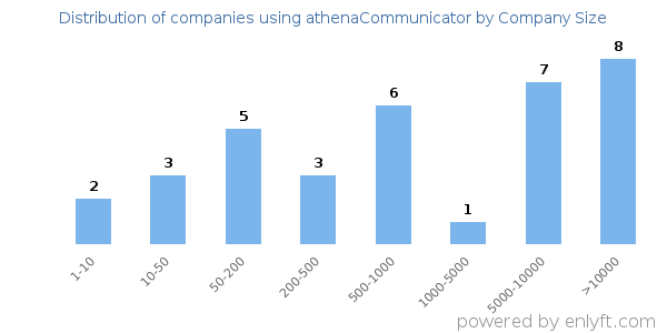We have data on 35 companies that use athenaCommunicator. The companies using athenaCommunicator are most often found in United States and in the Hospital & Health Care industry. athenaCommunicator is most often used by companies with >10000 employees and >1000M dollars in revenue. Our data for athenaCommunicator usage goes back as far as 9 years and 3 months.