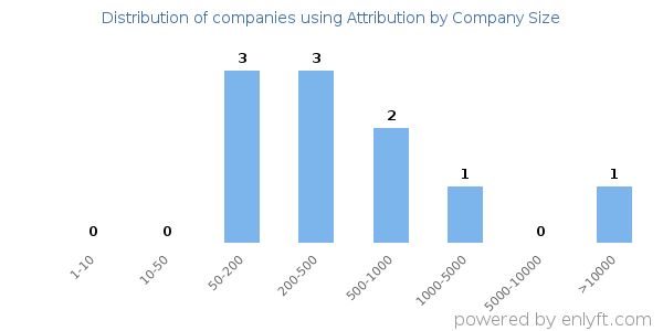 We have data on 10 companies that use Attribution. The companies using Attribution are most often found in United States and in the Computer Software industry. Attribution is most often used by companies with 200-500 employees and 10M-50M dollars in revenue. Our data for Attribution usage goes back as far as 8 years and 3 months.