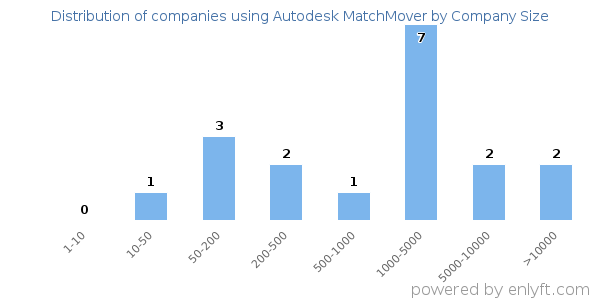 We have data on 19 companies that use Autodesk MatchMover. The companies using Autodesk MatchMover are most often found in United Kingdom and in the Higher Education industry. Autodesk MatchMover is most often used by companies with 1000-5000 employees and 200M-1000M dollars in revenue. Our data for Autodesk MatchMover usage goes back as far as 9 years and 4 months.