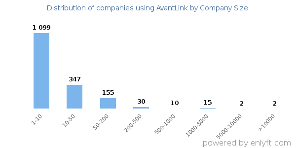 Of all the customers that are using AvantLink, a majority (65%) are small (<50 employees), 15% are large (>1000 employees) and 21% are medium-sized.