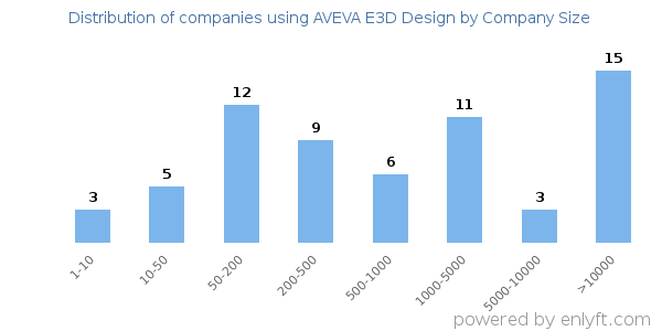 We have data on 64 companies that use AVEVA E3D Design. The companies using AVEVA E3D Design are most often found in United States and in the Oil & Energy industry. AVEVA E3D Design is most often used by companies with >10000 employees and >1000M dollars in revenue. Our data for AVEVA E3D Design usage goes back as far as 3 years and 5 months.