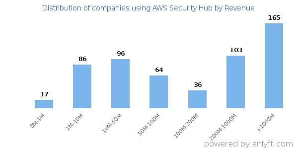 We have data on 608 companies that use AWS Security Hub. The companies using AWS Security Hub are most often found in United States and in the Information Technology and Services industry. AWS Security Hub is most often used by companies with >10000 employees and >1000M dollars in revenue. Our data for AWS Security Hub usage goes back as far as 2 years and 8 months.