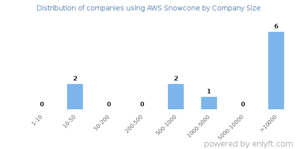 We have data on 11 companies that use AWS Snowcone. The companies using AWS Snowcone are most often found in United States and in the Computer Software industry. AWS Snowcone is most often used by companies with >10000 employees and >1000M dollars in revenue. Our data for AWS Snowcone usage goes back as far as 2 years and 8 months.