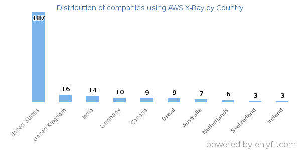 62% of AWS X-Ray customers are in United States and 5% are in United Kingdom.
