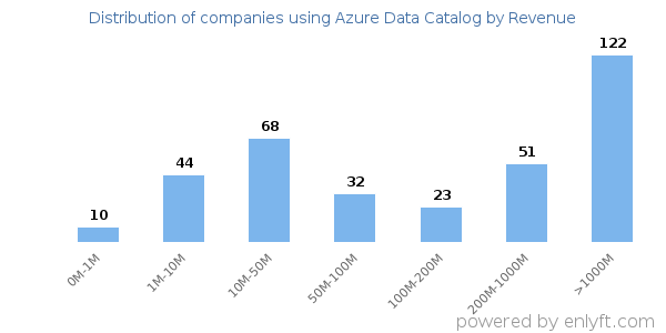 We have data on 372 companies that use Azure Data Catalog. The companies using Azure Data Catalog are most often found in United States and in the Information Technology and Services industry. Azure Data Catalog is most often used by companies with >10000 employees and >1000M dollars in revenue. Our data for Azure Data Catalog usage goes back as far as 7 years and 5 months.