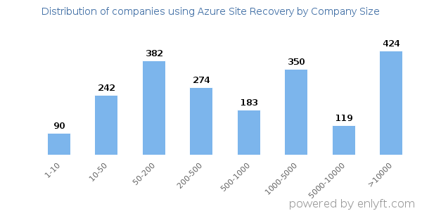 We have data on 2,095 companies that use Azure Site Recovery. The companies using Azure Site Recovery are most often found in United States and in the Information Technology and Services industry. Azure Site Recovery is most often used by companies with >10000 employees and >1000M dollars in revenue. Our data for Azure Site Recovery usage goes back as far as 8 years and 3 months.