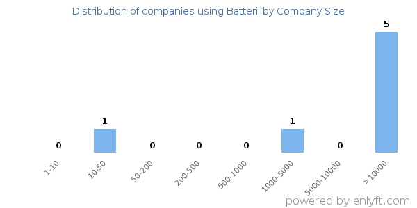 We have data on 7 companies that use Batterii. Batterii is most often used by companies with >10000 employees and >1000M dollars in revenue. Our data for Batterii usage goes back as far as 8 years and 3 months.