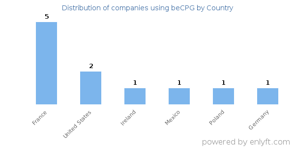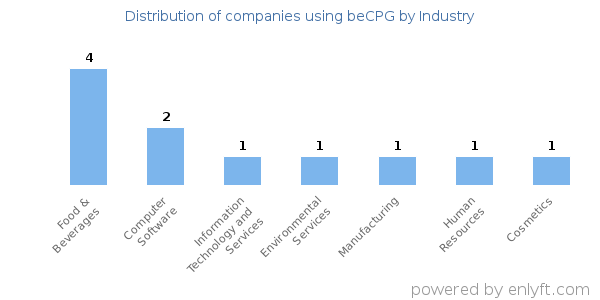 We have data on 12 companies that use beCPG. The companies using beCPG are most often found in France and in the Food & Beverages industry. beCPG is most often used by companies with 50-200 employees and 10M-50M dollars in revenue. Our data for beCPG usage goes back as far as 4 years and 6 months.