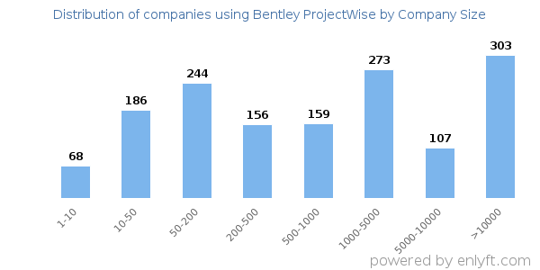 We have data on 1,521 companies that use Bentley ProjectWise. The companies using Bentley ProjectWise are most often found in United States and in the Civil Engineering industry. Bentley ProjectWise is most often used by companies with >10000 employees and >1000M dollars in revenue. Our data for Bentley ProjectWise usage goes back as far as 10 years and 3 months.